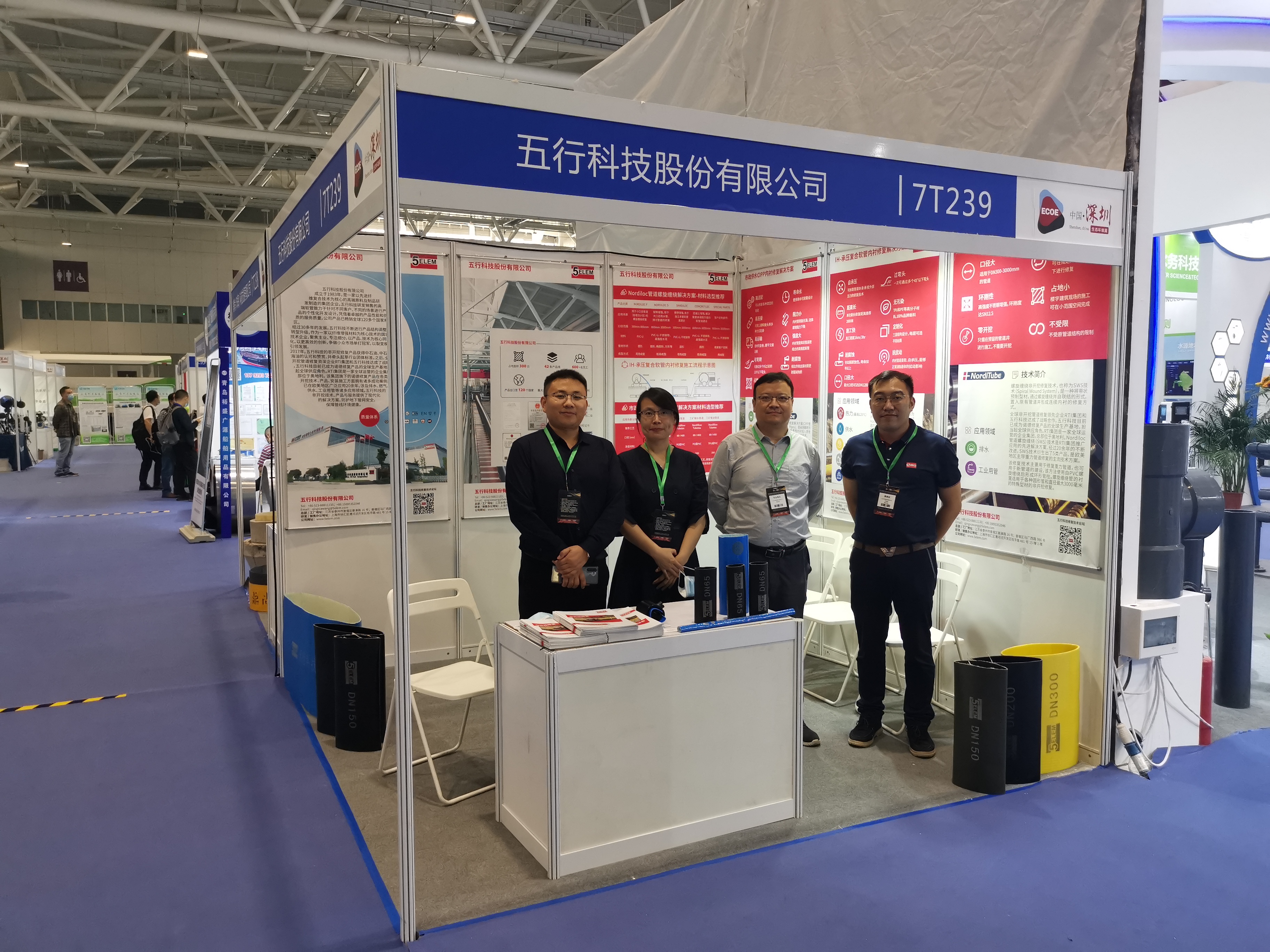 展會以“留住青山綠水,探索產業藍海”為主題,旨在推動生態環境科技創新交流和產業發展,促進生態環境對外交流與合作,更好地服務污染防治攻堅戰和高質量發展。因此,五行科技攜帶“Nordiloc管道螺旋纏繞解決方案”、“市政供水CIPP內襯更新解決方案”、 “IH-承壓復合軟管內襯更新解決方案”三類非開挖更新的專業技術與產品在展會期間進行了現場展示,助力建設優美、清潔的城市環境,和諧、宜居的人居環境。